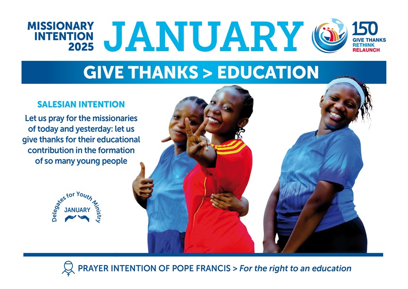 Furthermore, this year Cagliero11 wants to focus more on the missionary anniversary and its three key words. In particular, the missionary intentions for each month will focus not on specific countries, but on certain groups of people or movements within our Salesian Family. In the first month of 2025, we want to give thanks. We will especially give thanks for education and teaching, and we will pray for the delegates for Youth Ministry.