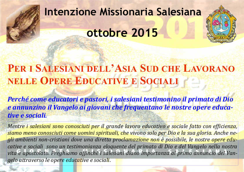 Per i Salesiani dell’Asia Sud che lavorano nelle opere educative e sociali