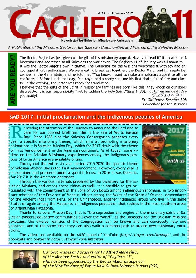 SMD 2017: initial proclamation and the indigenous peoples of America The Rector Major has just given us the gift of his missionary appeal. Have you read it? It is dated on 8 December and addressed to all Salesians the worldover. The Cagliero 11 of January was all about it.